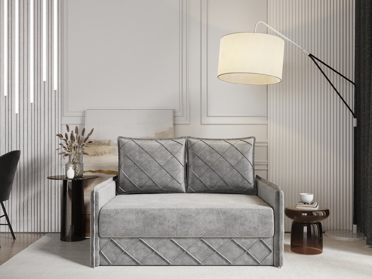 Малогабаритный диван «Фишт» выделяется утонченными боковинами с декоративным «гребешком» и эффектной ромбовидной отстрочкой на подушках и царге.